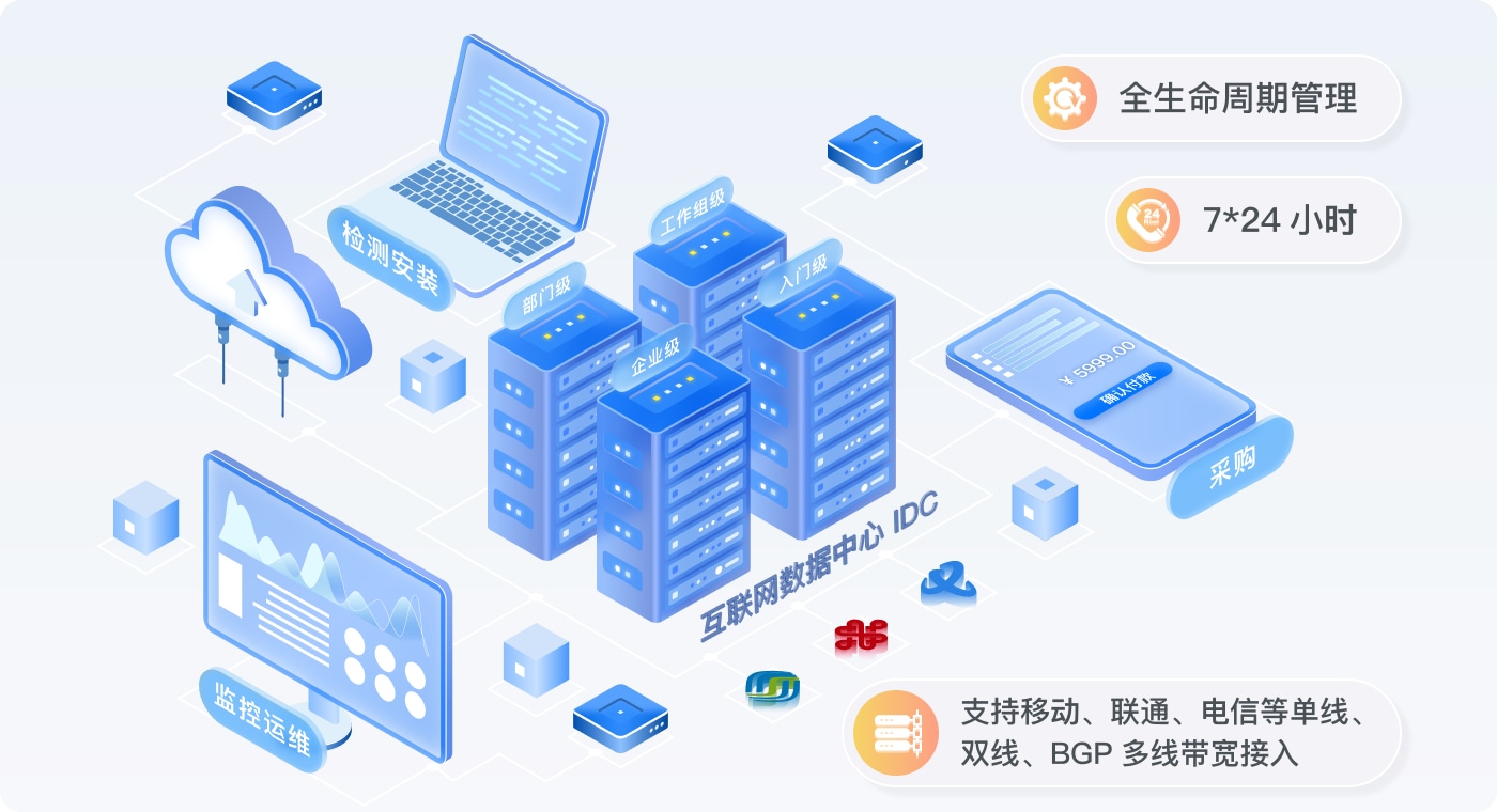 为阿里云提供互联网数据中心服务器设备全方位托管服务。
